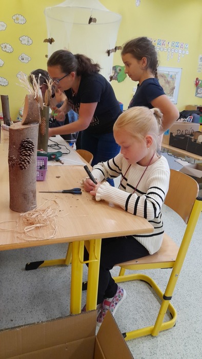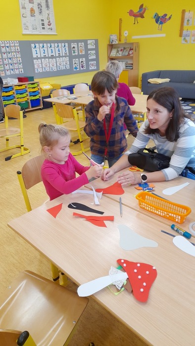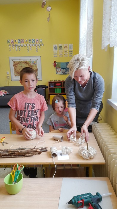 Na děti a dospěláky čekalo celkem šest stanovišť, kde si postupně děti za větší či menší pomoci vyráběly krásné dekorace. Domů si odnášely sovičku z pěnové hmoty, provázkovou dýni, netopýra z šišky, papírovou muchomůrku, šnečky z kaštanů a sovičku z dřevěného špalku.