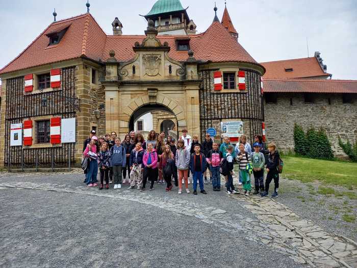 Ve čtvrtek 13. 6. vyrazili žáci třetí a šesté třídy společně na školní výlet. Pod vedením paní učitelky Najdek a paní učitelky Kalinové navštívili nejprve hrad Bouzov, kde je čekala prohlídka s velmi zajímavým výkladem přizpůsobeným na míru dětem. Následovala cesta do jeskyní Javoříčko. Zde děti kromě krásných krápníkových útvarů zaujali i drobní příbuzní netopýrů, vrápenci, kteří se tu hojně vyskytují. Počasí nám přálo, a tak jsme se všichni spokojení vrátili domů.
