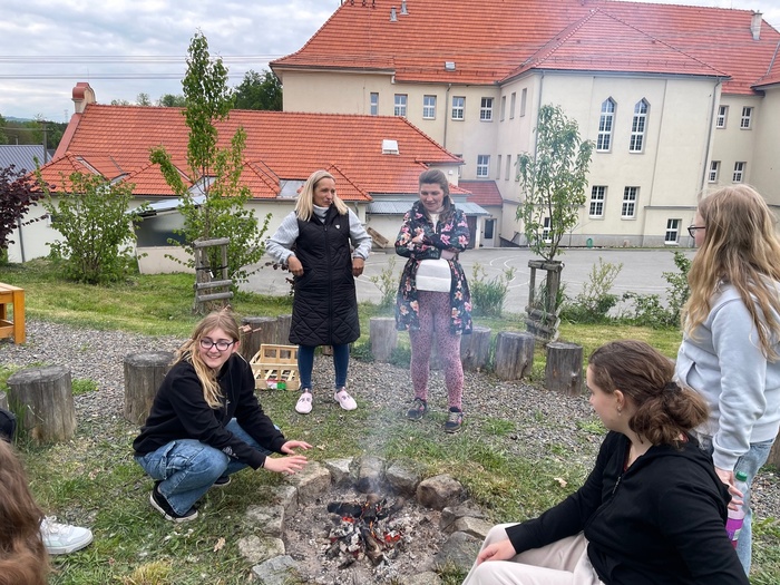 Sraz jsem si dali v 17 hodin, a protože je to naše poslední noční pobývání na základní škole, pozvali jsme ještě na odpolední posezení také rodiče. Počasí nebylo úplně ideální, ale i tak jsme strávili u ohně za školou zhruba dvě hodiny (bohužel jsme zapomněli fotit, takže tuto část naší akce nemáme zdokumentovanou).