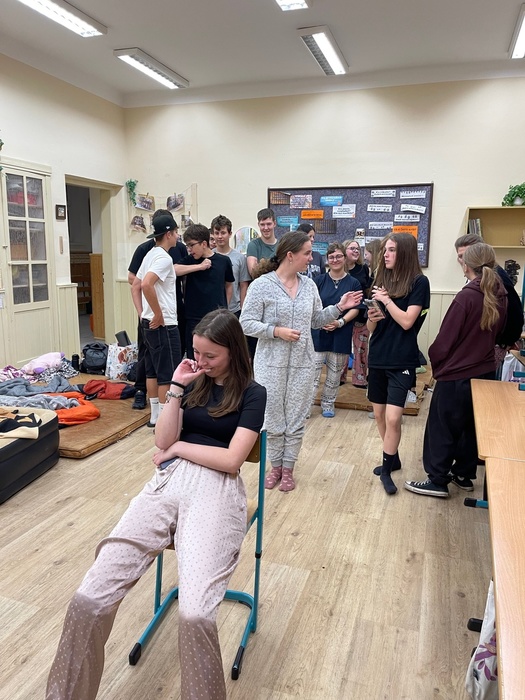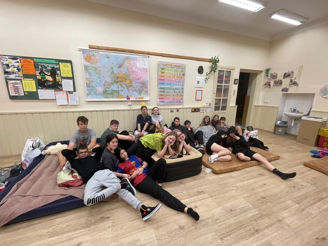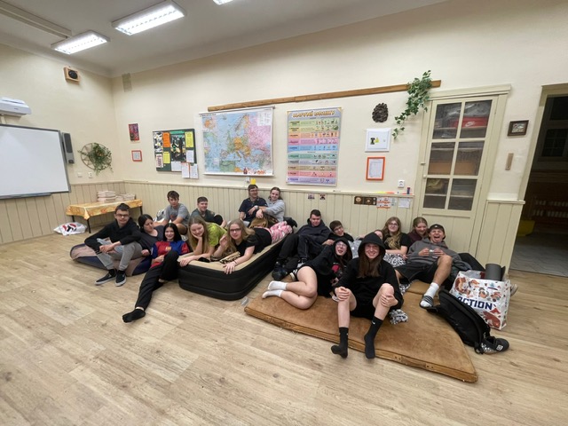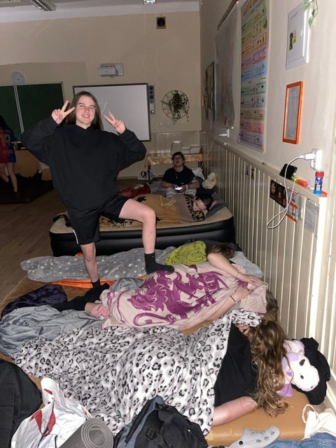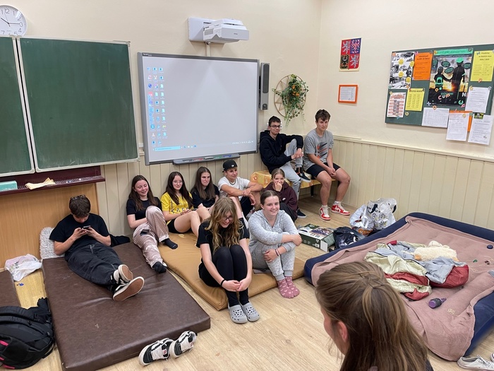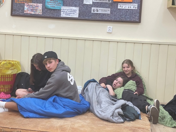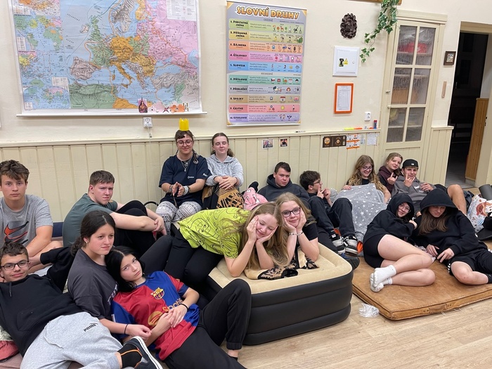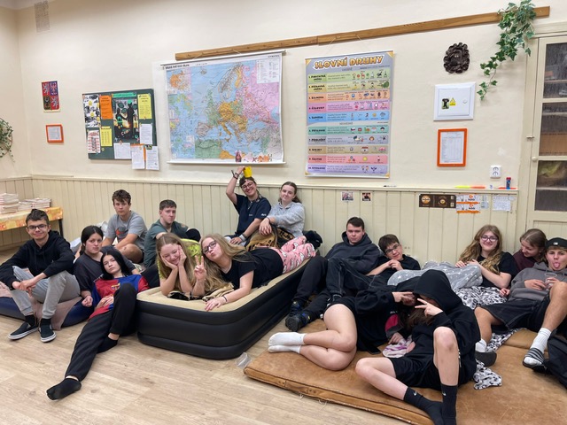 S blížícím se koncem školního roku začínají mít naši žáci zájem o spaní ve škole. Jako prvním se to letos - ve středu 7. 5. 2025 poštěstilo těm nejstarším, tedy deváťákům.