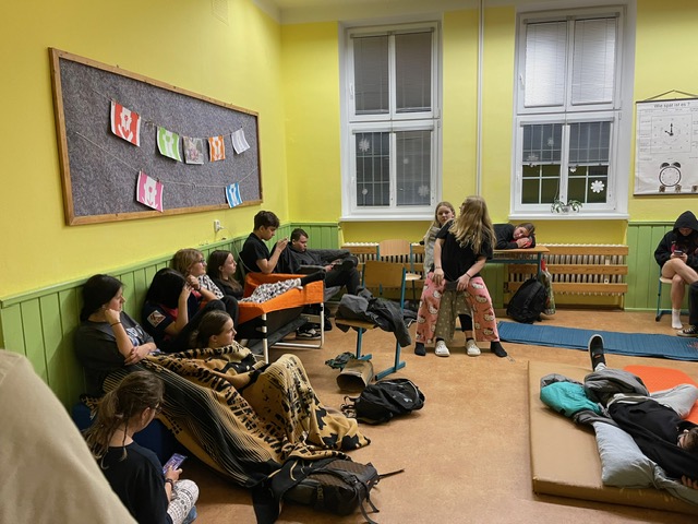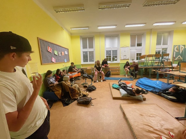 Přestože mělo jít o spaní ve škole, vydržela být většina vzhůru až do brzkých ranních hodin.