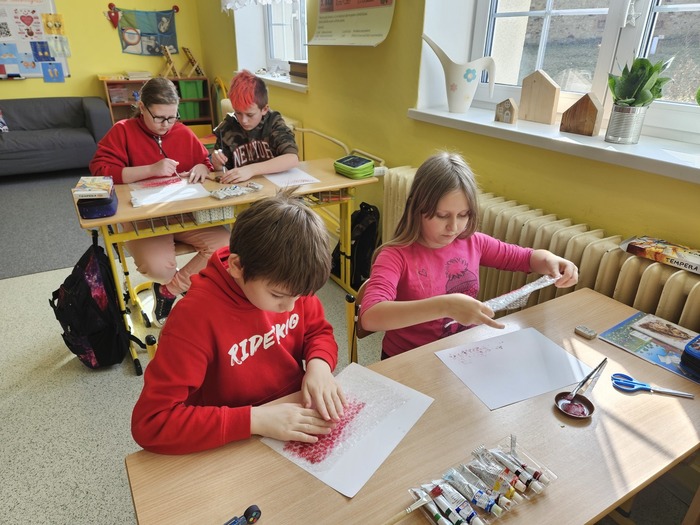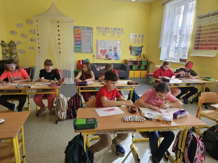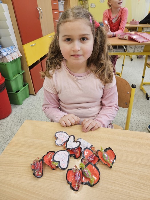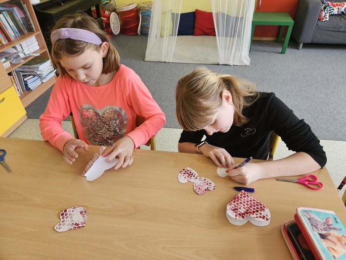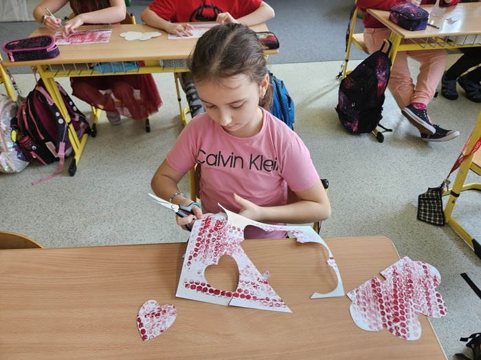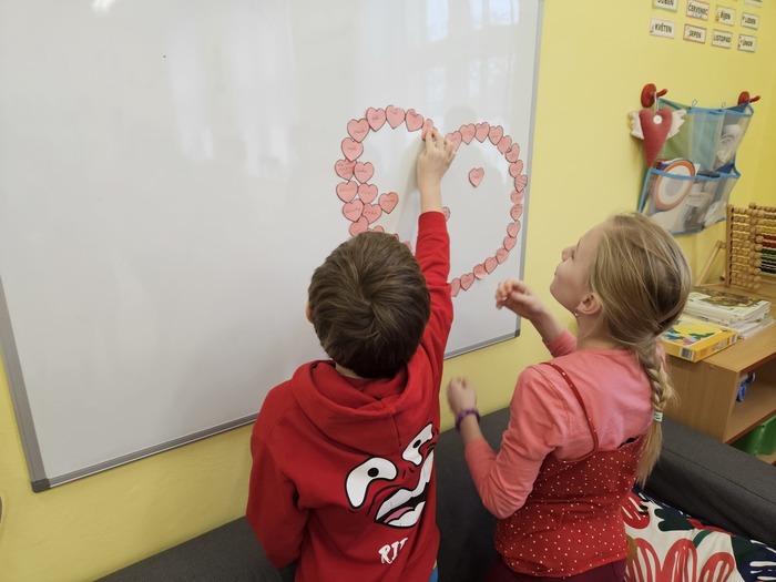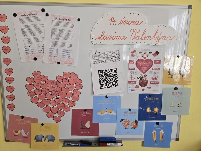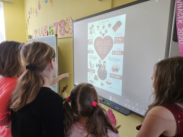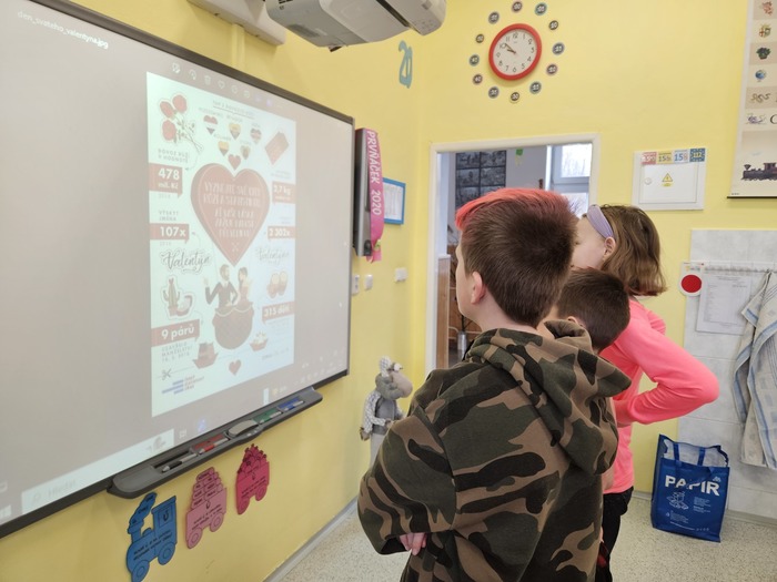 V českém jazyce je čekal brainstorming, rozlosování ve wordwallu a „běhavka“, při které zjistili, kdo byl svatý Valentin. V matematice počítali s římskými číslicemi, tvořili QR kód a pracovali s infografikou ČSÚ. V dalších hodinách se seznámili s tím, jak se řekne slovo „miláček“ v různých zemích, poslechli si a zazpívali písničky o lásce a vyrobili dáreček pro svoje blízké.