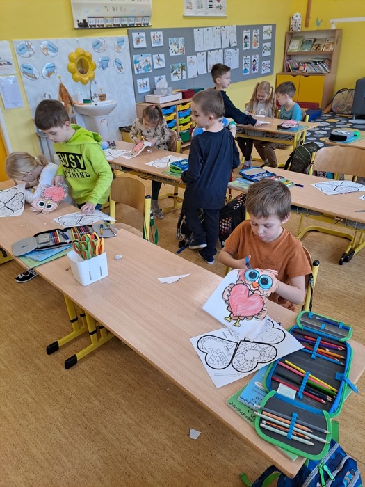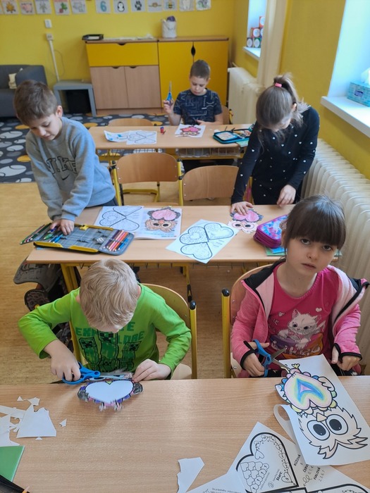 Výrobou soviček se srdíčky si procvičili vystřihování, ale i učivo českého jazyka a matematiky.