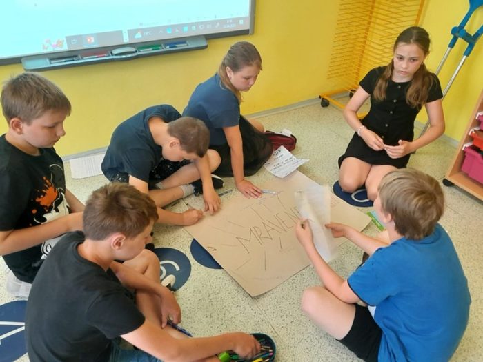 Tomuto vyučování předcházela domácí příprava – zjistit zajímavosti ze života zvířat – mravence a holuba. Na základě toho se ve skupinách pracovalo na myšlenkových mapách. Děti se seznámily nejen s tvůrci, ale i hlavními znaky bajek, které pak v dalších příbězích vyhledávaly a přemýšlely nad mravním poučením. Pracovalo se ve skupinkách na úkolech v pracovním listě.