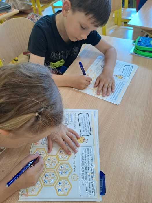 Prvňáci si vyrobili knížku, ve které si upevnili nové poznatky z besedy a zároveň se dozvěděli i něco nového. Nechybělo přitom ani procvičení učiva.