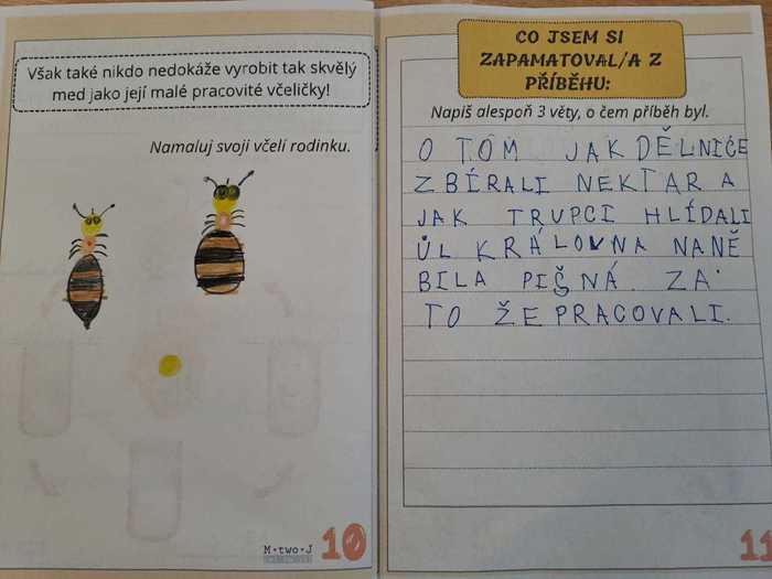 Čtvrťáci pracovali ve skupinách a věnovali se „skládankovému učení“. Každá skupina se stala expertem na dané oblasti ze života včel a poté získané informace předala ostatním. Nakonec namalovali obrázek s tímto užitečným hmyzem.