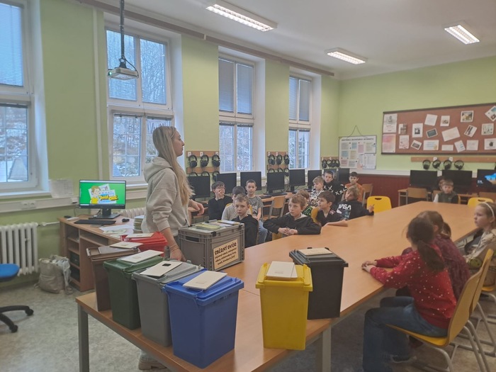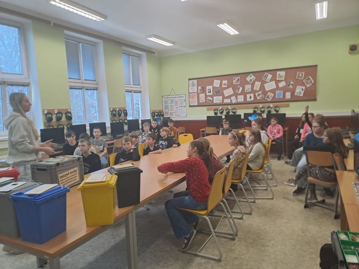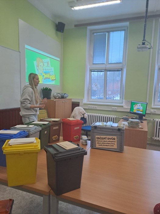 V úterý 7. ledna 2025 byl na naší škole realizován program společnosti EKO-KOM Tonda Obal na cestách. Jeho cílem je podpora vědomí odpovědnosti za životní prostředí a propagace tříděného sběru odpadů. Důležitým bodem besedy byla recyklace. Lektoři vysvětlili, co se děje s odpadem poté, co je vytříděný, a jaké výrobky mohou vzniknout z recyklovaných materiálů. Žáci se tak dozvěděli, že třídění odpadu není jen povinnost, ale i způsob, jak přispět k vytváření nových užitečných produktů. Interaktivní besedy se postupně zúčastnili všichni žáci naší školy.
