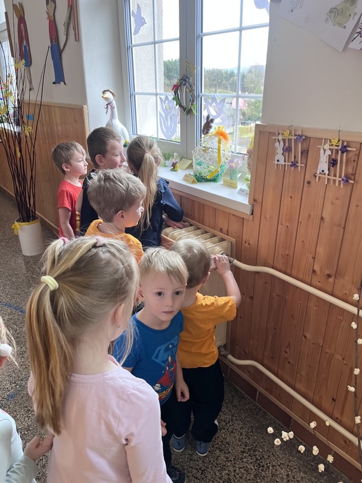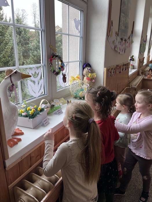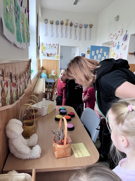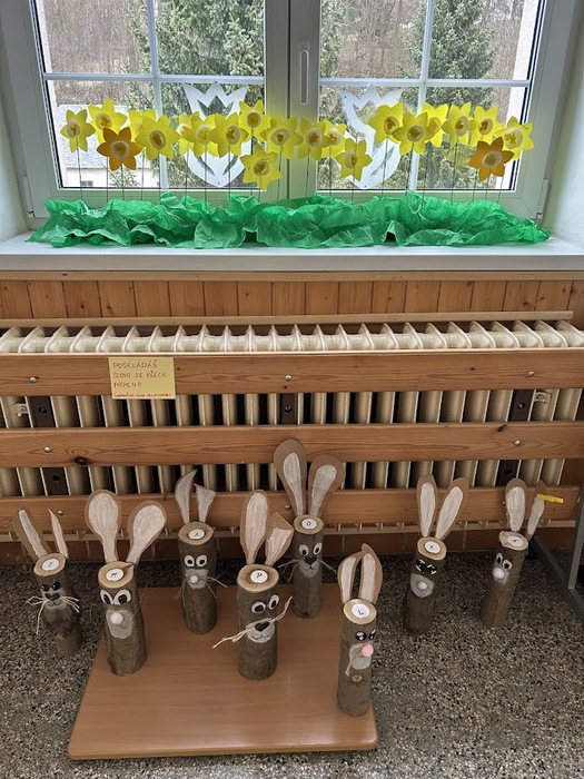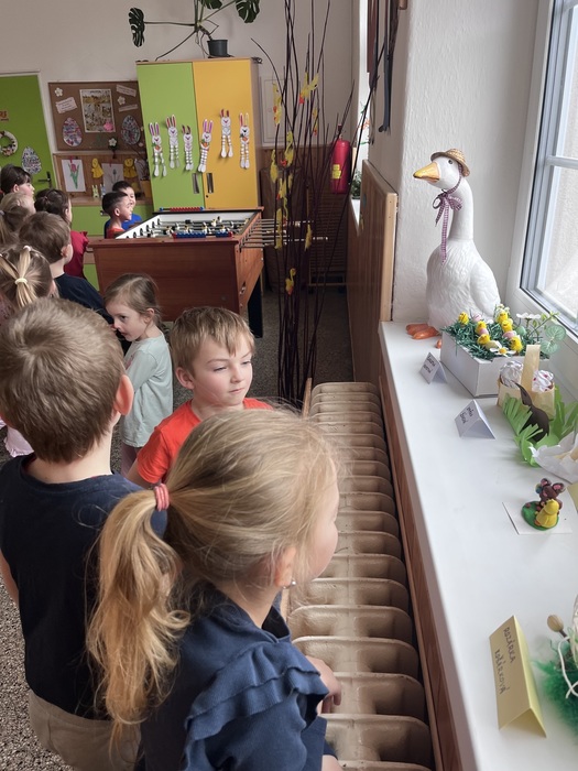Minulý týden se naše chodba ve druhém patře budovy B proměnila v jarní galerii. Tradiční výstava byla letos opět plná barev a originality. Vedle obrázků z vyučování zářily i dekorace, které děti vyrobily doma společně s rodiči – a bylo opravdu na co koukat! Program zpestřily interaktivní úkoly – od zvuků zvířat až po velikonoční rébusy.