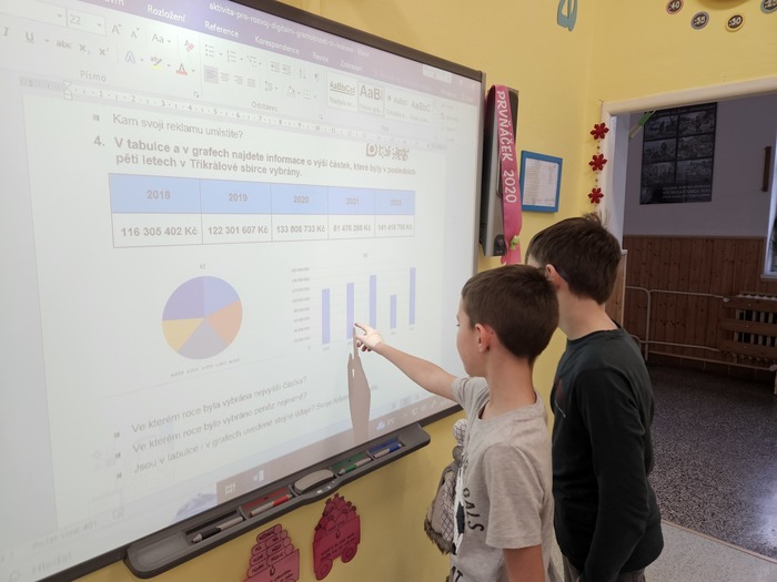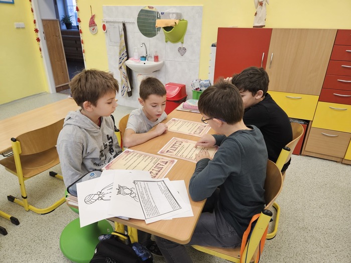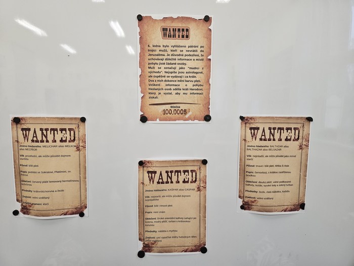V pátek 5. ledna čekal čtvrťáky tematický den Tři králové. První hodinu začali brainstormingem, aby zjistili, co všechno ví o tomto svátku. Poté si přečetli úryvek z Matoušova evangelia a porovnávali informace, které se dozvěděli z úryvku. Následovala skupinová práce „WANTED“ a zjišťování, jak mohli králové vypadat. Také se naučili, co je myrha a kadidlo, a že existuje strom kadidlovník. Druhá hodina byla věnována Tříkrálové sbírce. Žáci pracovali s daty, grafy a porovnávali, ve kterém roce bylo vybráno nejvíce a nejméně peněz. Také zkoušeli pomocí písemného dělení vypočítat, kolik lidí by muselo přispět, když by každý daroval 2 koruny, 5 korun nebo třeba 9 korun. Další hodiny jsme věnovali kreslení. Zapojili jsme se do soutěže o návrh na potisk kolednického šátku na krk pro rok 2025, protože v tomto roce bude sbírka slavit čtvrt století.