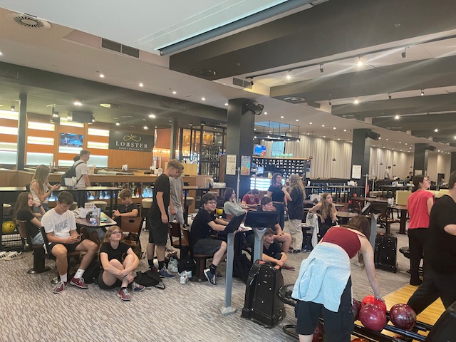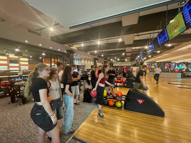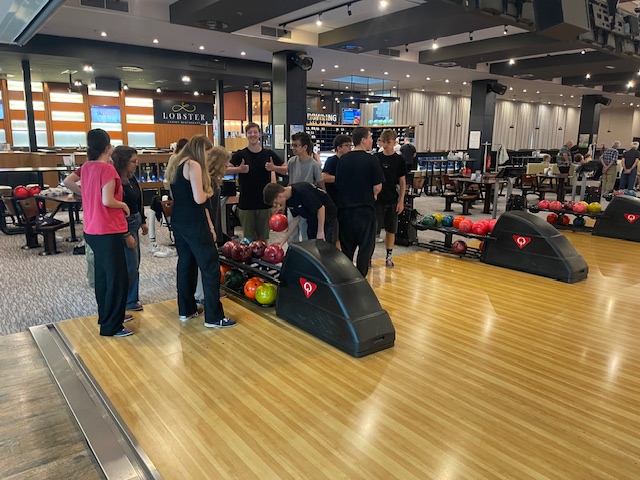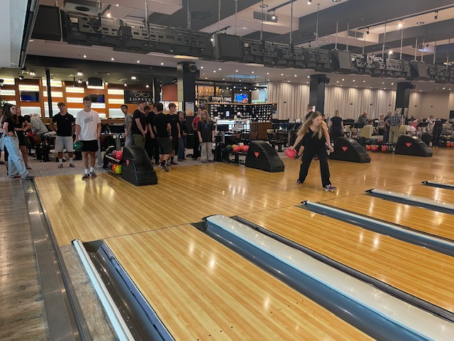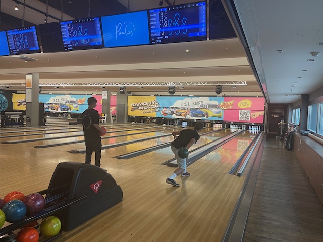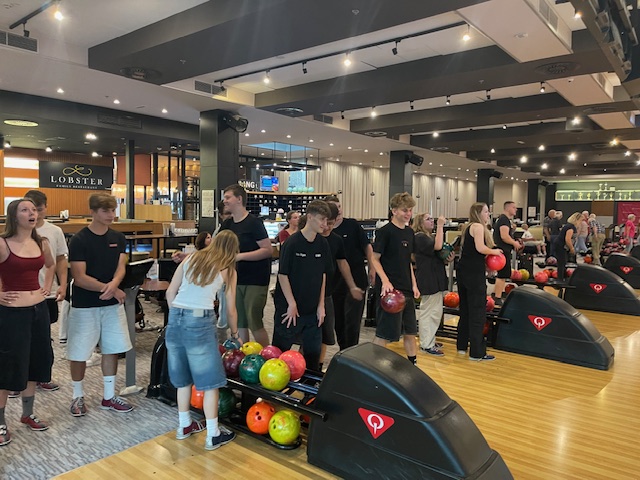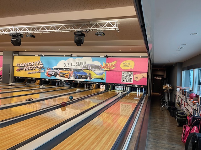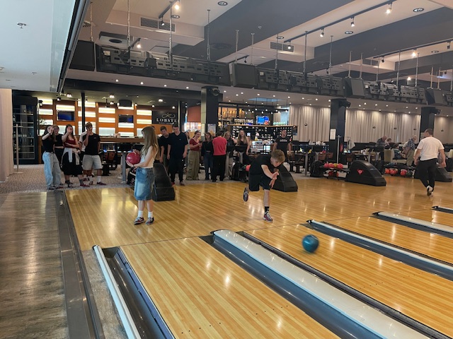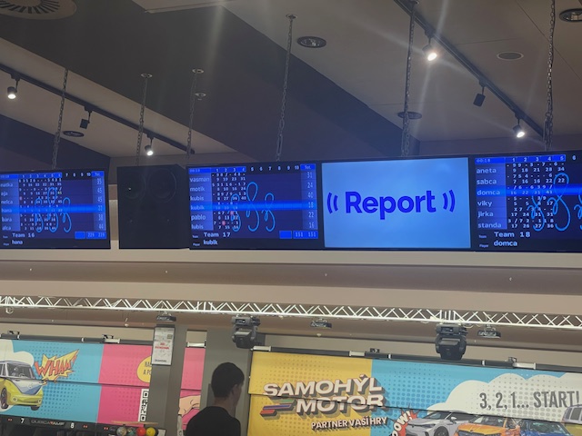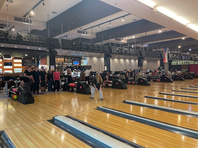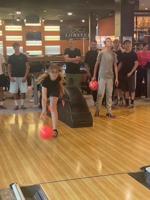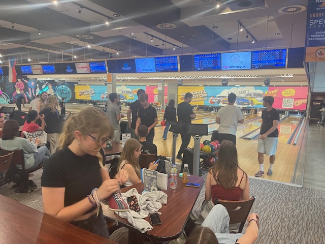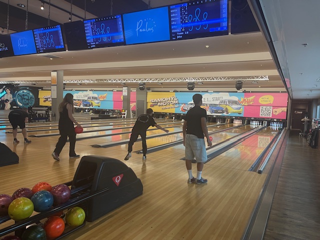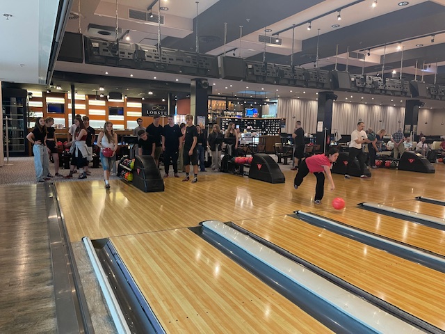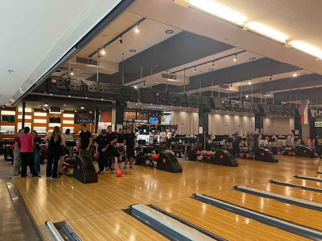 V obchodním centru jsme měli na dvě hodiny rezervované tři dráhy v Bowland Bowling Centru, kde jsme se pustili do sportovního bowlingového klání. Někteří sráželi kuželky jako o život, jiní se naopak spřátelili s méně oblíbenými „žlábky“ neboli „kanálky“. I tak jsme si ale všichni hru skvěle užili.