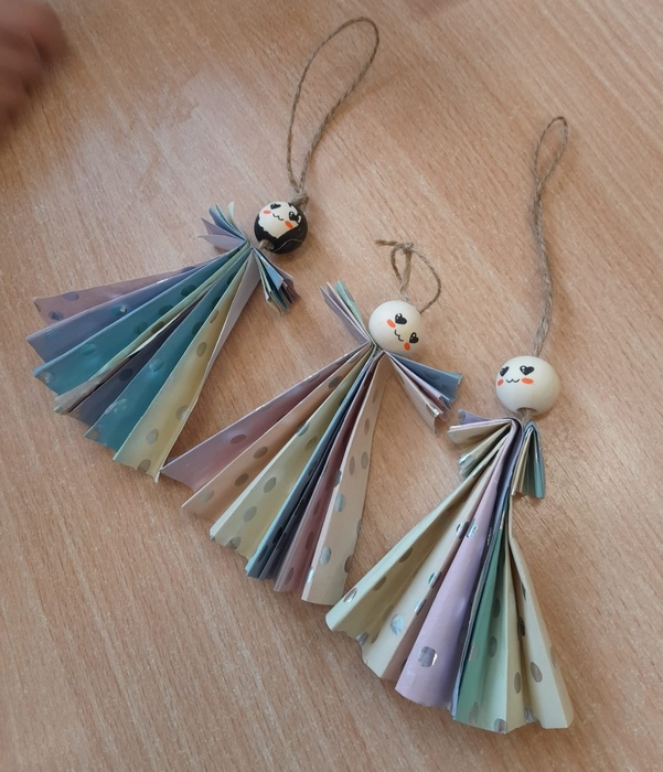 Potom přišli na řadu vánoční andílci k zavěšení na vánoční stromeček, které děti vytvarovaly a vystříhaly z ozdobného papíru.