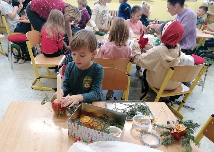 Štědrý večer už byl skoro za dveřmi, když ve čtvrtek 19. prosince proběhlo v první třídě vánoční tvoření dětí s jejich rodiči.