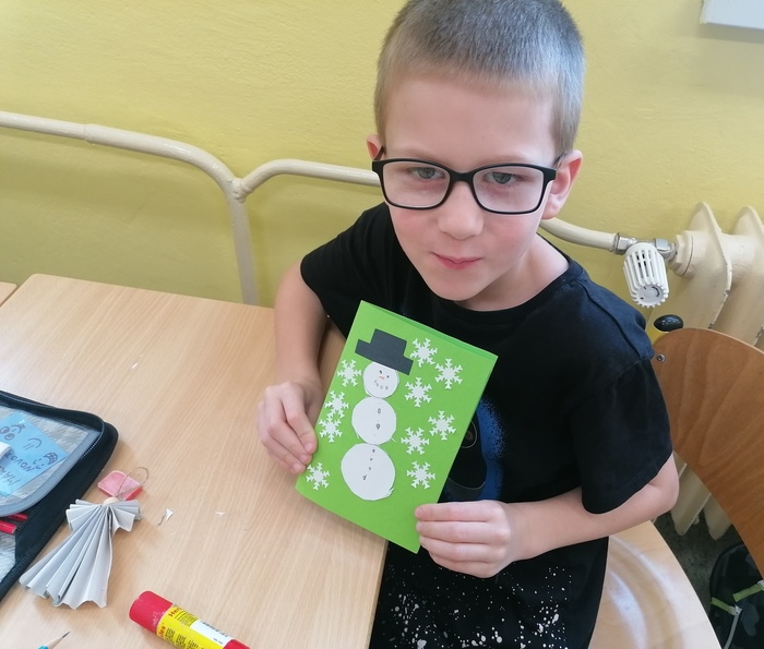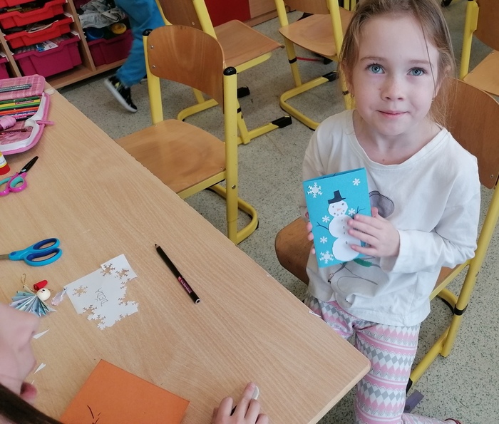 Nezapomněli jsme ani na vánoční přání. Pěkní sněhuláčci s přáním hezkých Vánoc jistě potěší rodiče i prarodiče.