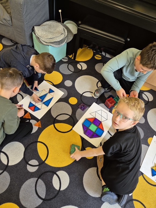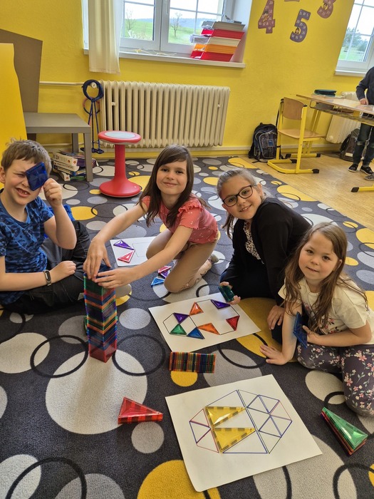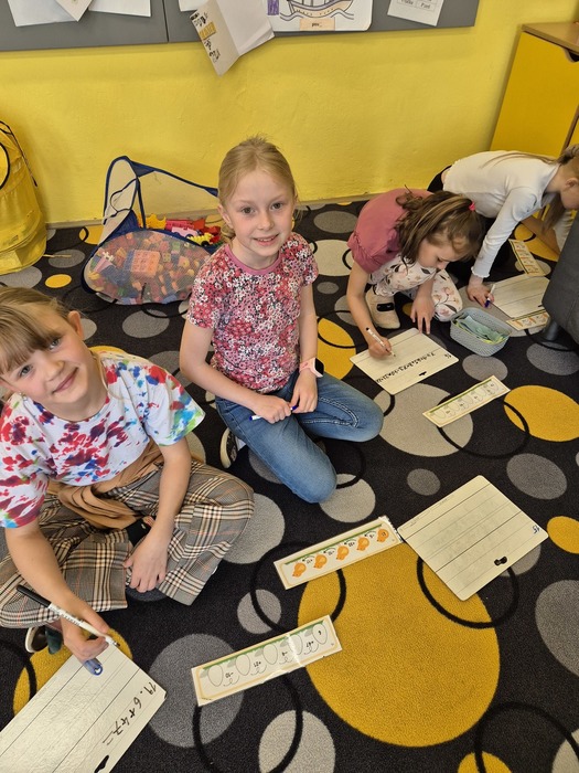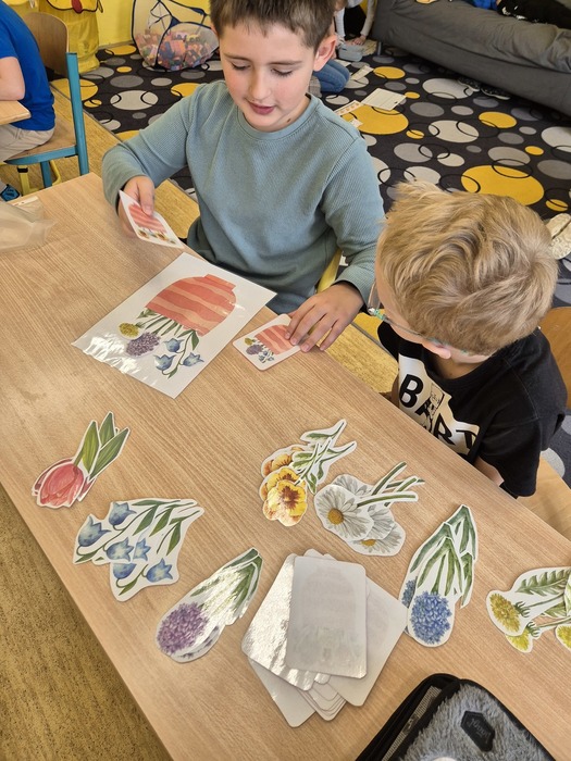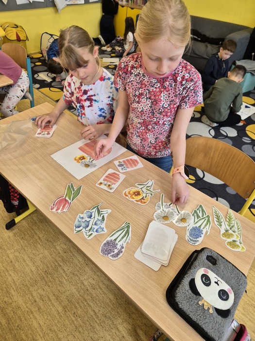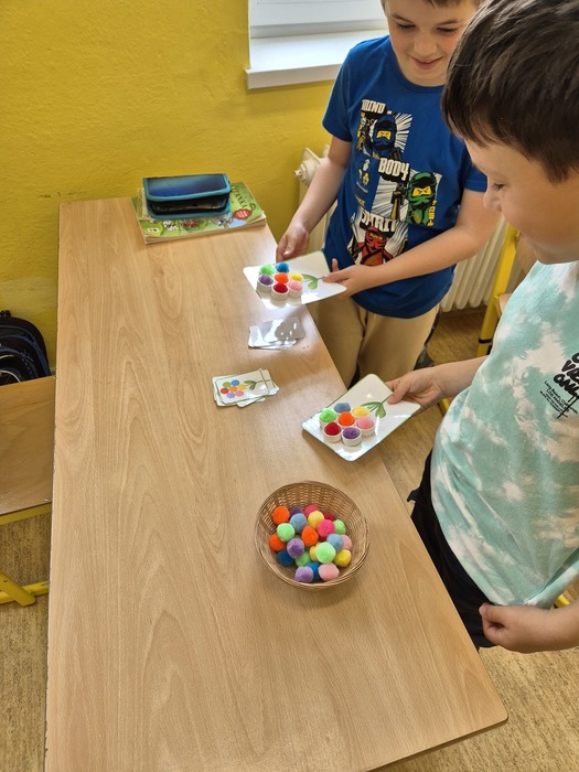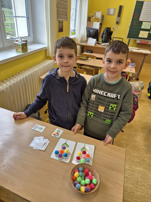 Ve druhé třídě si děti poté vyzkoušely několik stanovišť s jarní a velikonoční tematikou. Pomocí skládání, stavění, hledání a počítání si procvičily manuální zručnost, logické myšlení a spolupráci. V matematice si vytvořily násobilkové vajíčko, které si ozdobily pomocí násobků a příkladů.