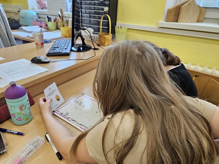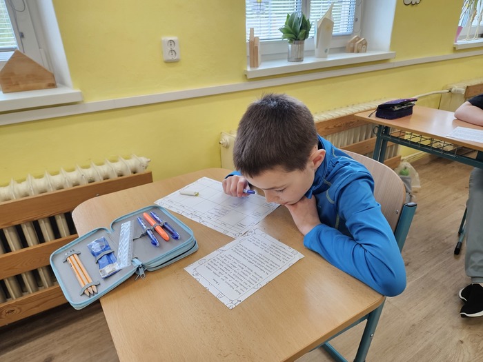 Páťáky pak v matematice čekaly slovní úlohy s tajenkou a také zdobení kraslice pomocí kružítka. V další hodině si vyzkoušeli skládankové učení, v kterém si přiblížili, jak se slaví velikonoční svátky ve světě. Nechybělo ani tvoření, kdy si domů odnesli zápich v podobě zajíčka.