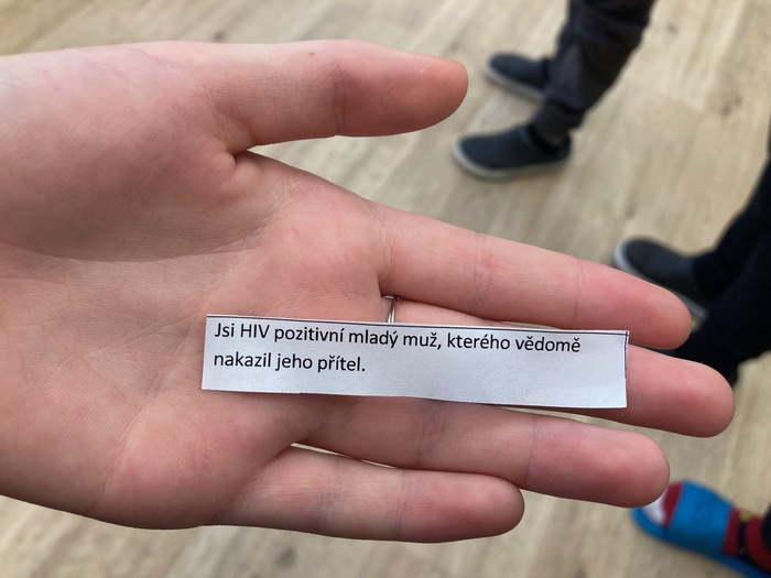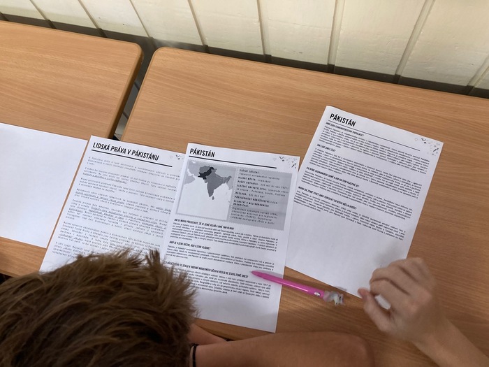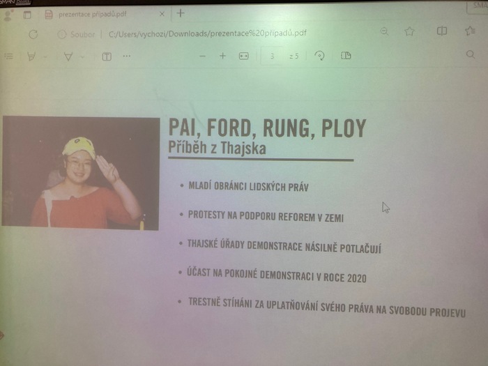 Workshopem provázeli zástupci neziskové organizace Amnesty International – studentka Pedagogické fakulty UP Olomouc Míša Přidalová a student Filozofické fakulty UP Olomouc Sváťa Urban.