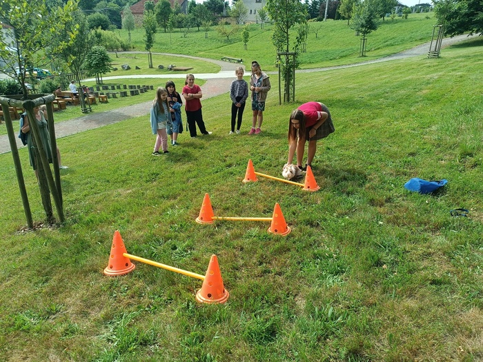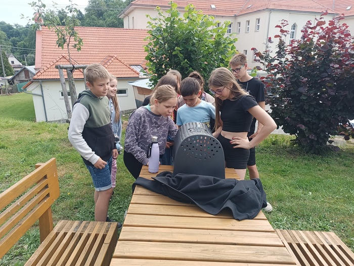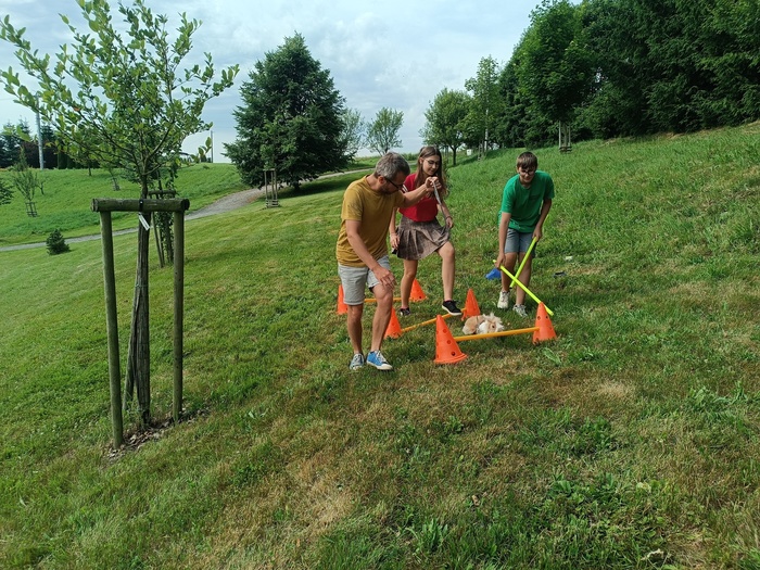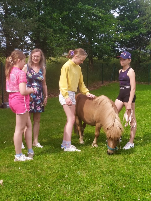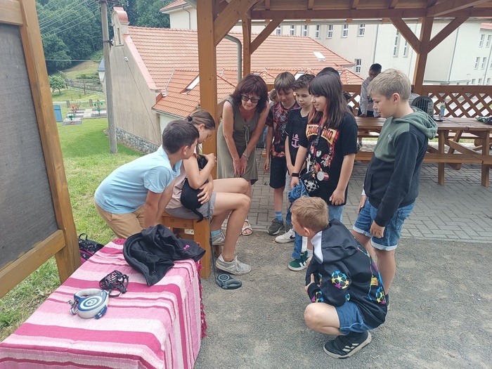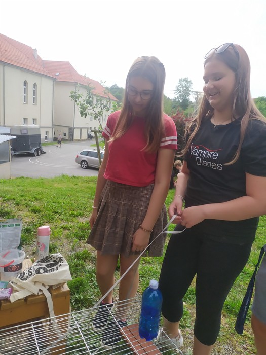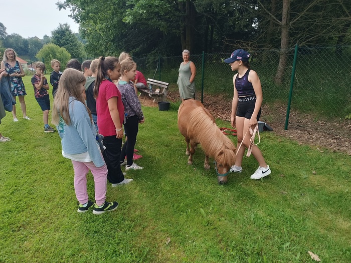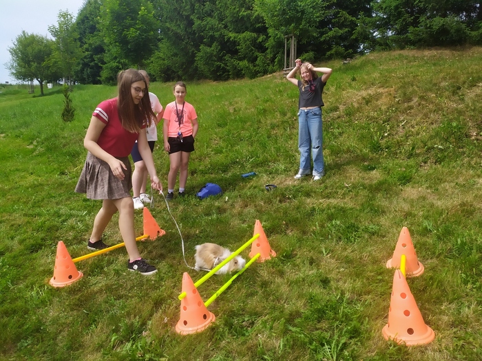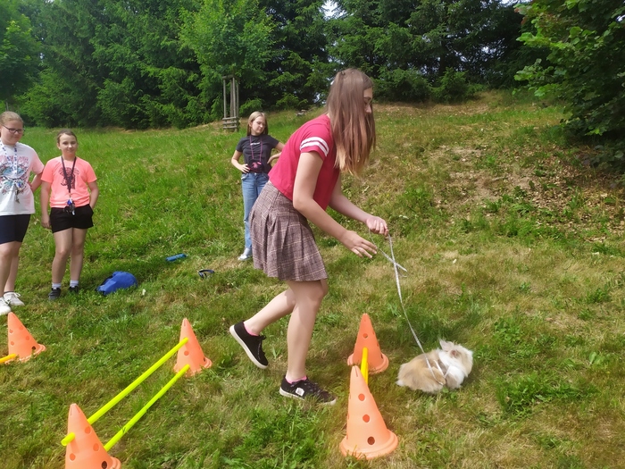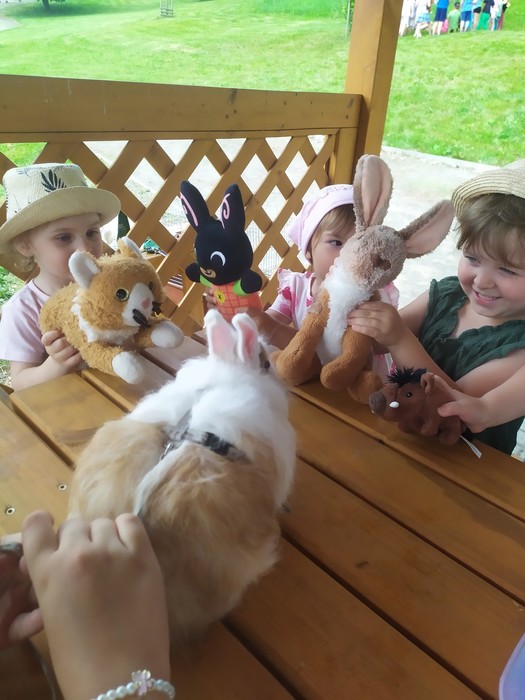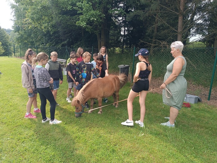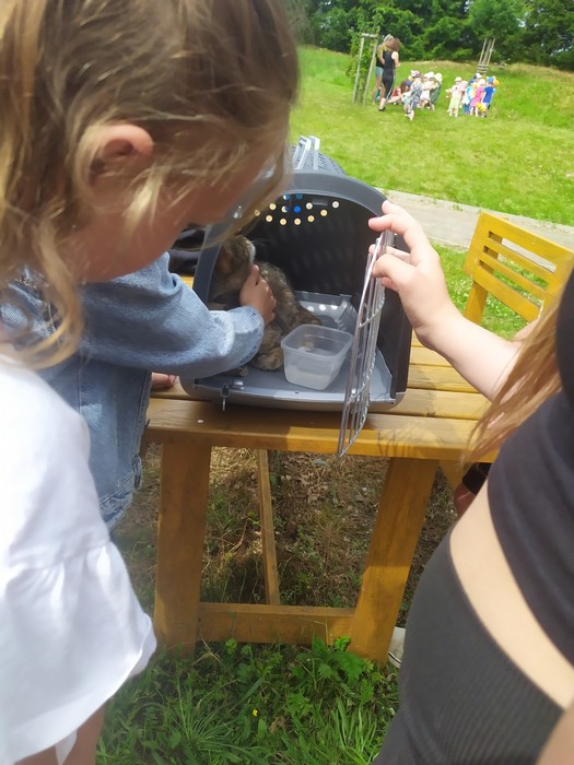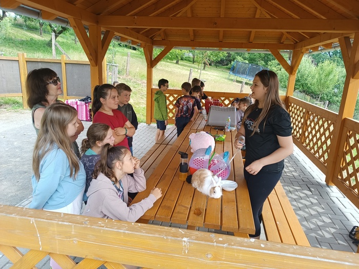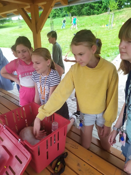 Ve školním altánu našla dočasné útočiště trojice králíků Sněhurka, Milík a Ňufík, trošku nervózní fenky jezevčíků Ťapka a Betka, pohodový sameček morčete Quick a kočka Málinka. Na školním hřišti se pásl poník Tofík.