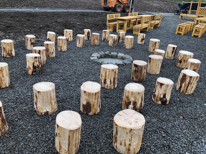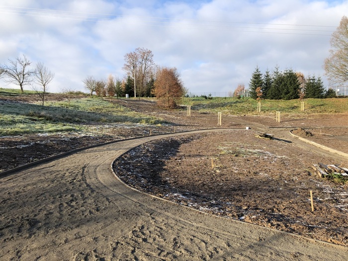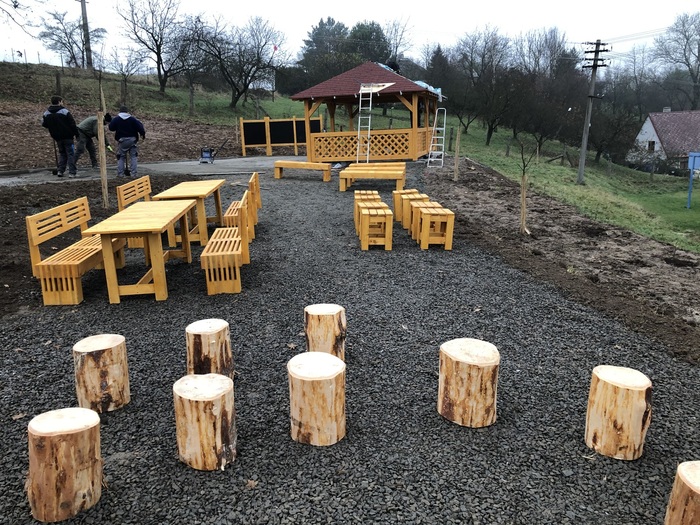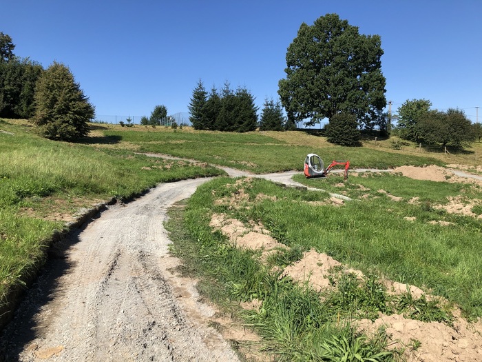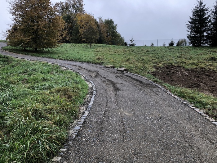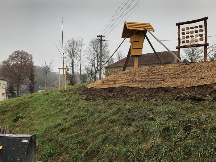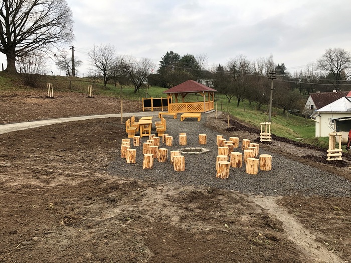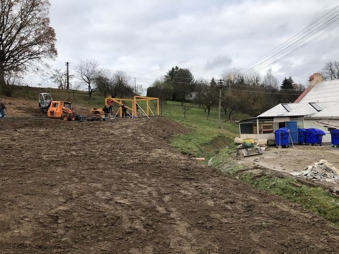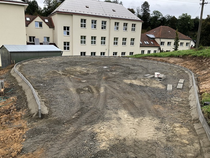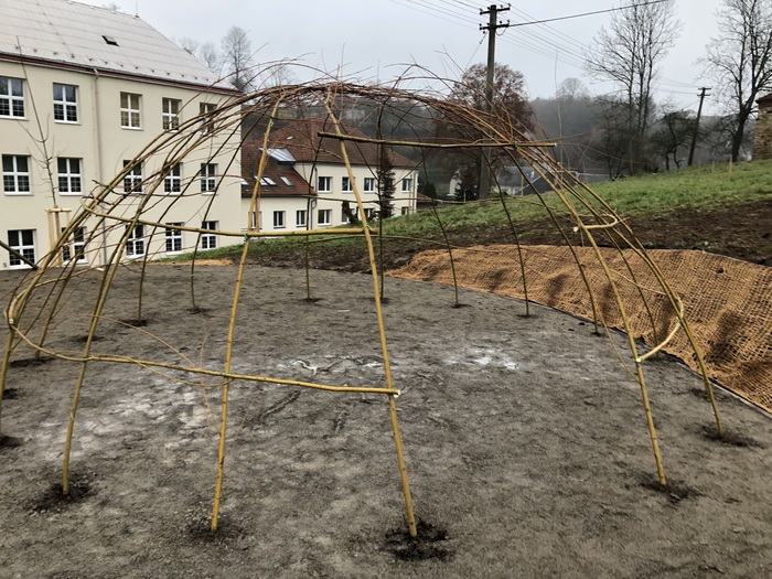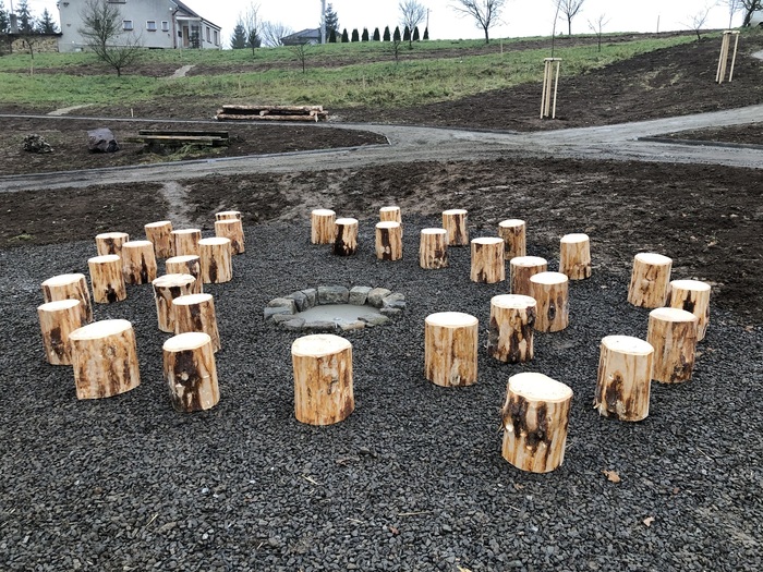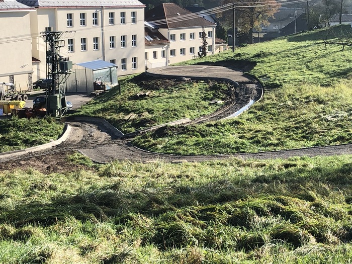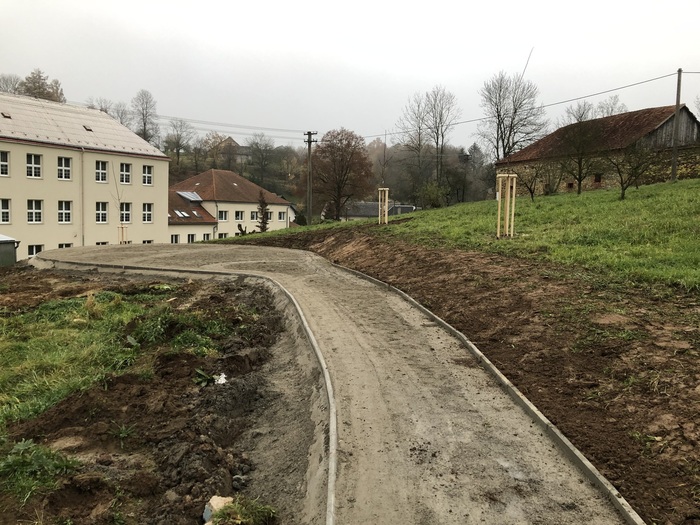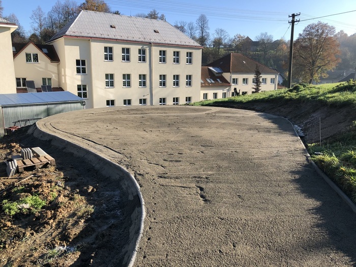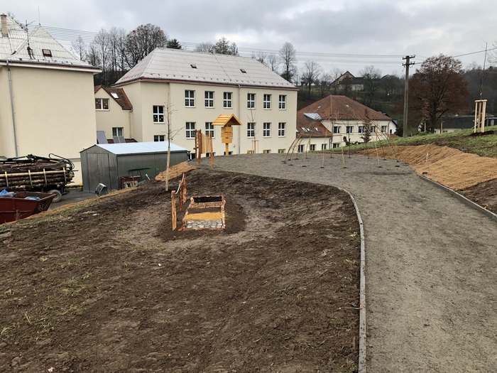 Druhá část projektu nezačala v původně plánovaných jarních měsících (díky koronavirovým problémům), ale až v září letošního roku. I tady se ovšem vyskytly překážky v podobě intenzivních deštů, které práce zpomalovaly a komplikovaly. Nakonec se dílo podařilo a na konci listopadu byla předána doposud nevyužitá stráň za školou, kde přibyla venkovní přírodní učebna s herními a ekologickými prvky a novou stromovou a bylinkovou výsadbou. Z minerálního betonu byly vybudovány cesty, které jednotlivé aktivity propojují.